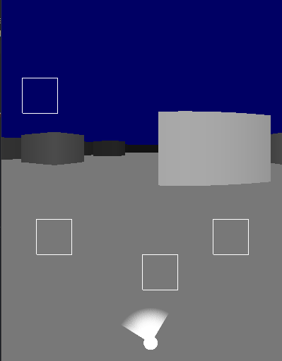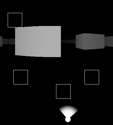 Lastly I added a gradient to the floor and ceiling to make them also look as if it’s getting further away. On top of that I finally added some more boxes to the map to make it a bit more interesting to run around in: